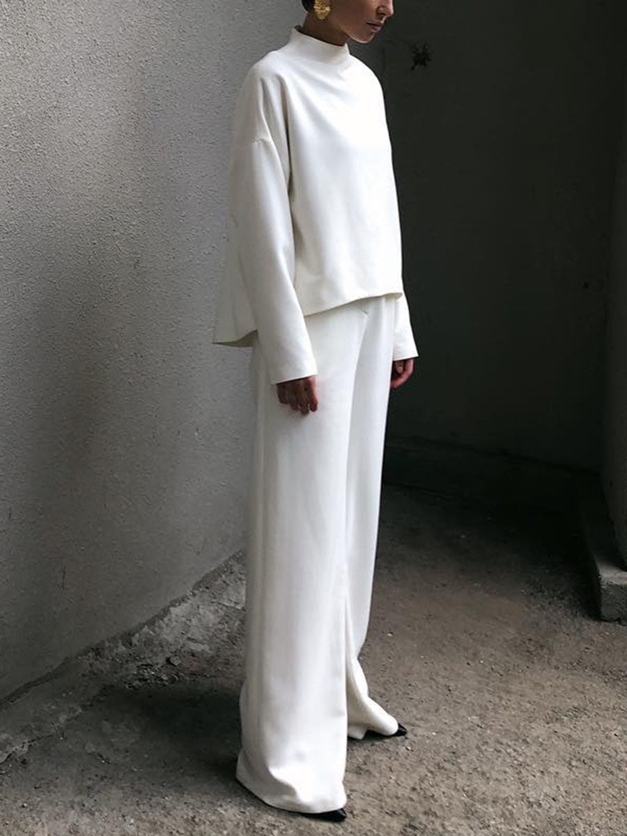 Product: Fashion Solid Color Round Neck Long Sleeve Two-piece Suit