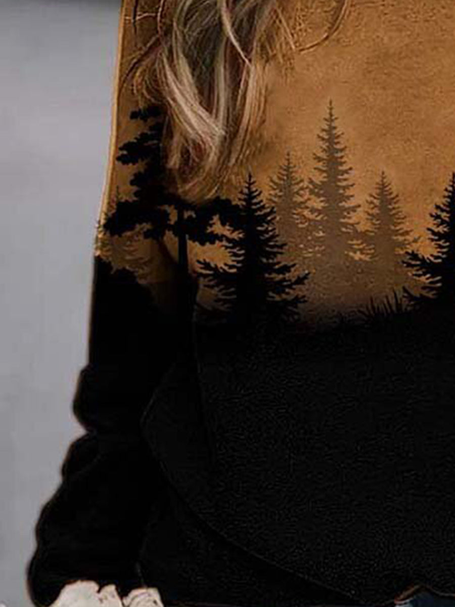Product: Forest Print Round Neck Long Sleeve Hoodies