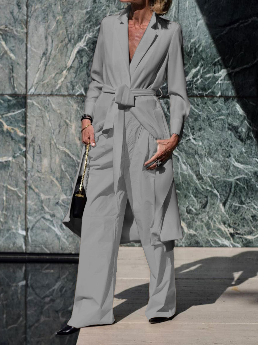 Solid Color Shirt and Pants Suit