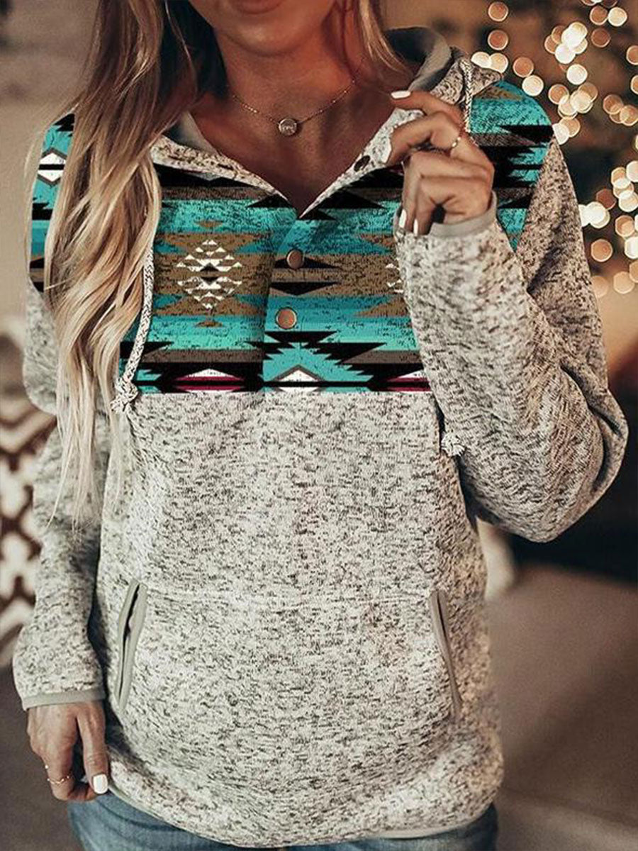 Product: Tribal Print Button Down Hooded Sweatshirt