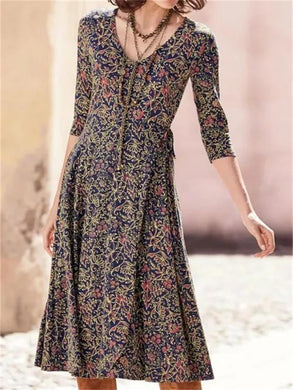 Retro Slit High Neck Women'S Casual Knitted Dress