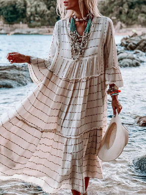 Retro Ethnic Style Loose Striped Women'S Holiday Dress