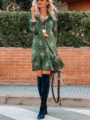 Retro Camouflage Print Women'S Holiday Casual Dress