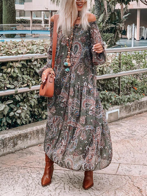 Retro Ethnic Style Totem Print Women'S Holiday Dress
