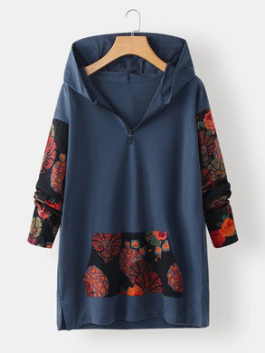 Women's Retro Zipper Collar Long Sleeve Pullover Top