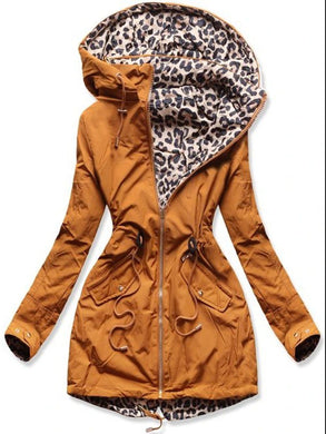 Leopard Print Hooded Reversible Coat
