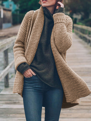 Solid Color Knitted Cardigan Coat