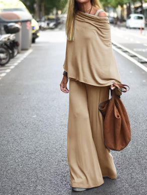 Fashion Casual Long Sleeve Solid Color Two-piece Suit