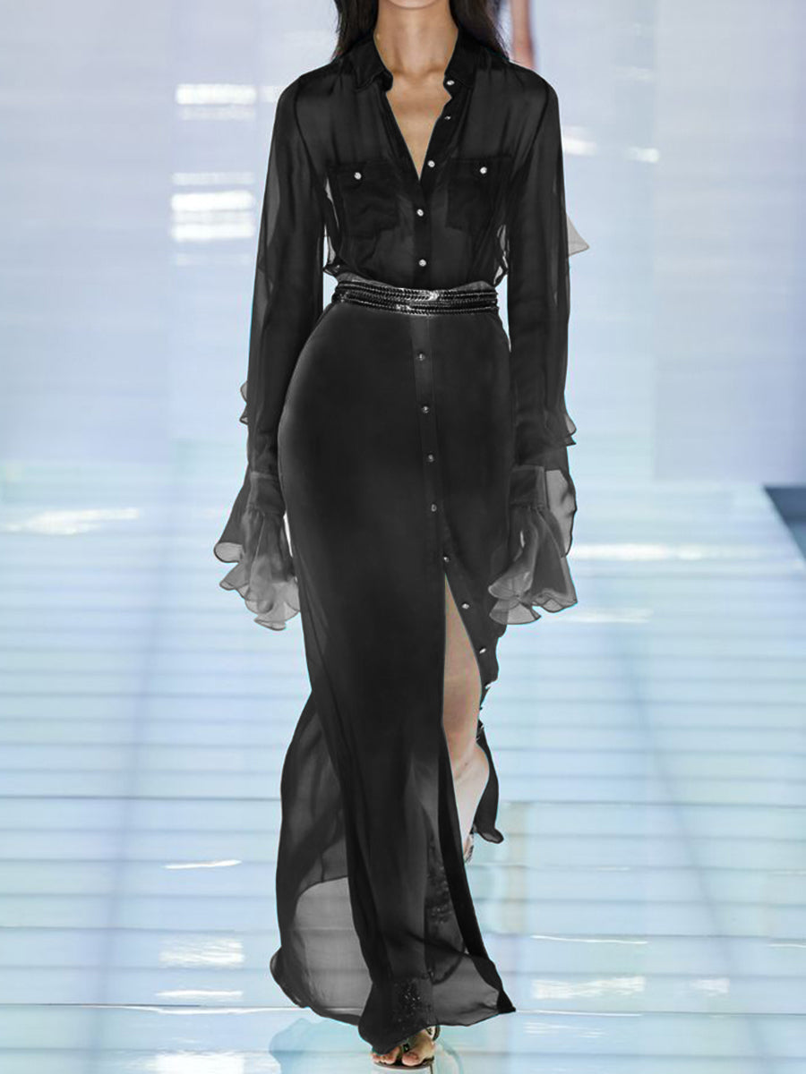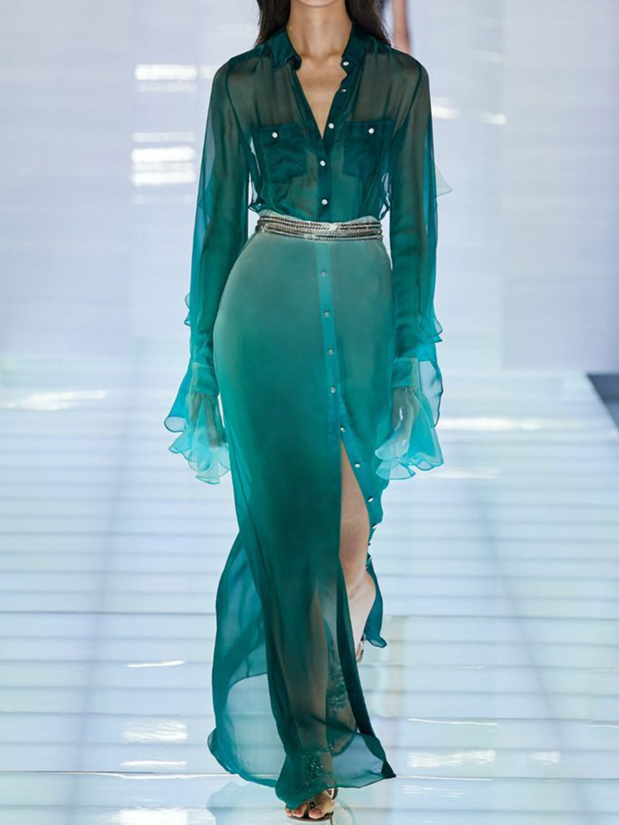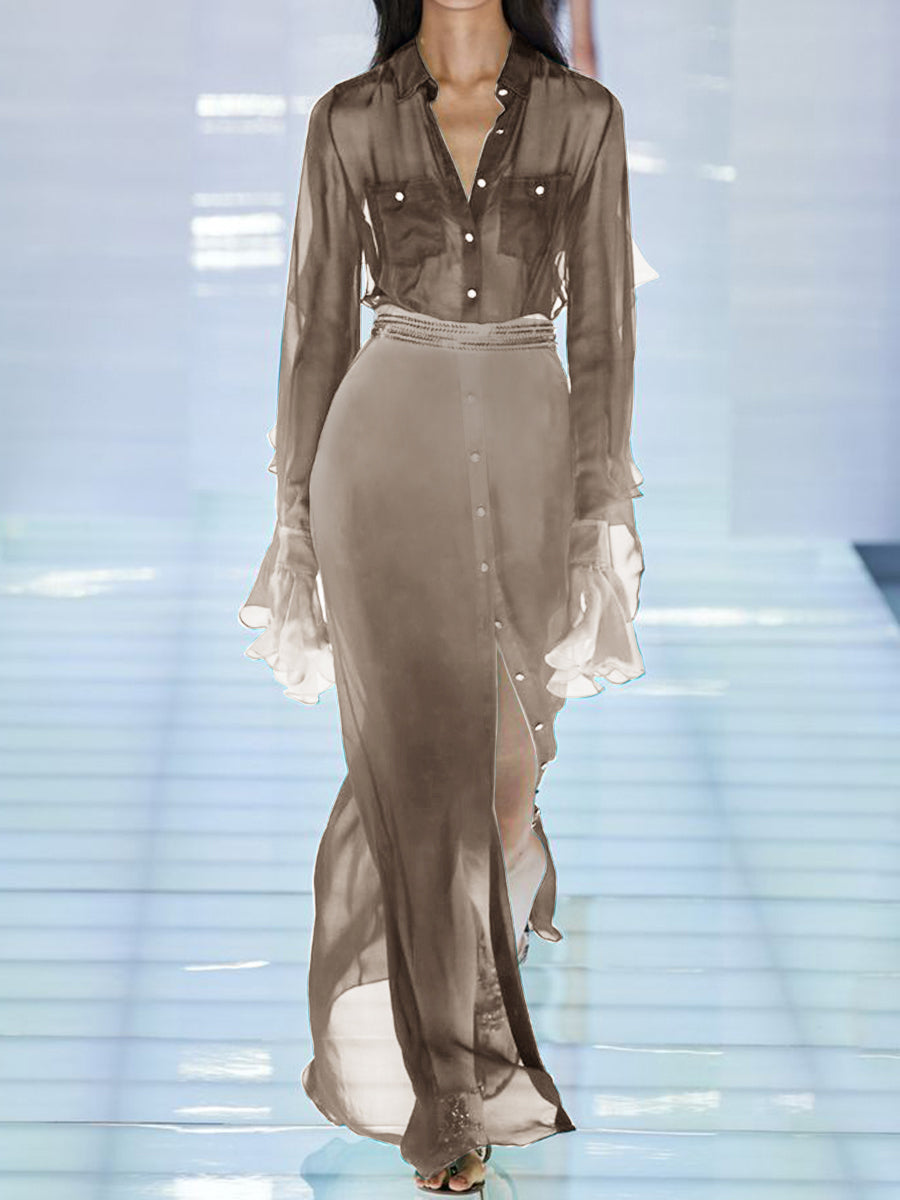 Product: Fashion Casual Solid Color Button Long Sleeve Two-piece Suit