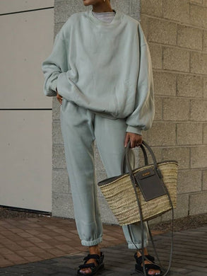 Fashion Casual Solid Color Round Neck Long Sleeve Two-piece Suit