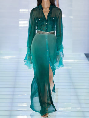 Fashion Casual Solid Color Button Long Sleeve Two-piece Suit