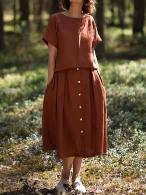 Simple Casual Loose Short Sleeved Top And Skirt Suit